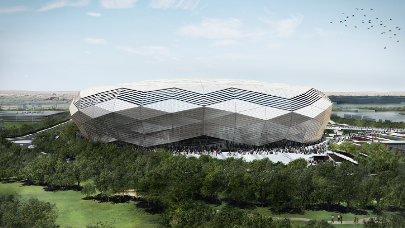 The stadium has a design that draws on the rich history of Islamic architecture, blending it with striking modernity. The facade features triangles that form complex, diamond-esque geometrical patterns, appearing to change colour with the sun's movement across the sky. Like diamonds, the stadium's design represents quality, durability and resilience, and will become something to be treasured – both for the memories it holds, and its future value to the country and region.