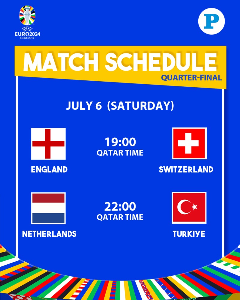 Berlin: While Turkiye face the Netherlands in a Euro 2024 quarter-final on Saturday, England aim to move a step closer to ending a 58-year wait to win a major tournament by beating Switzerland.