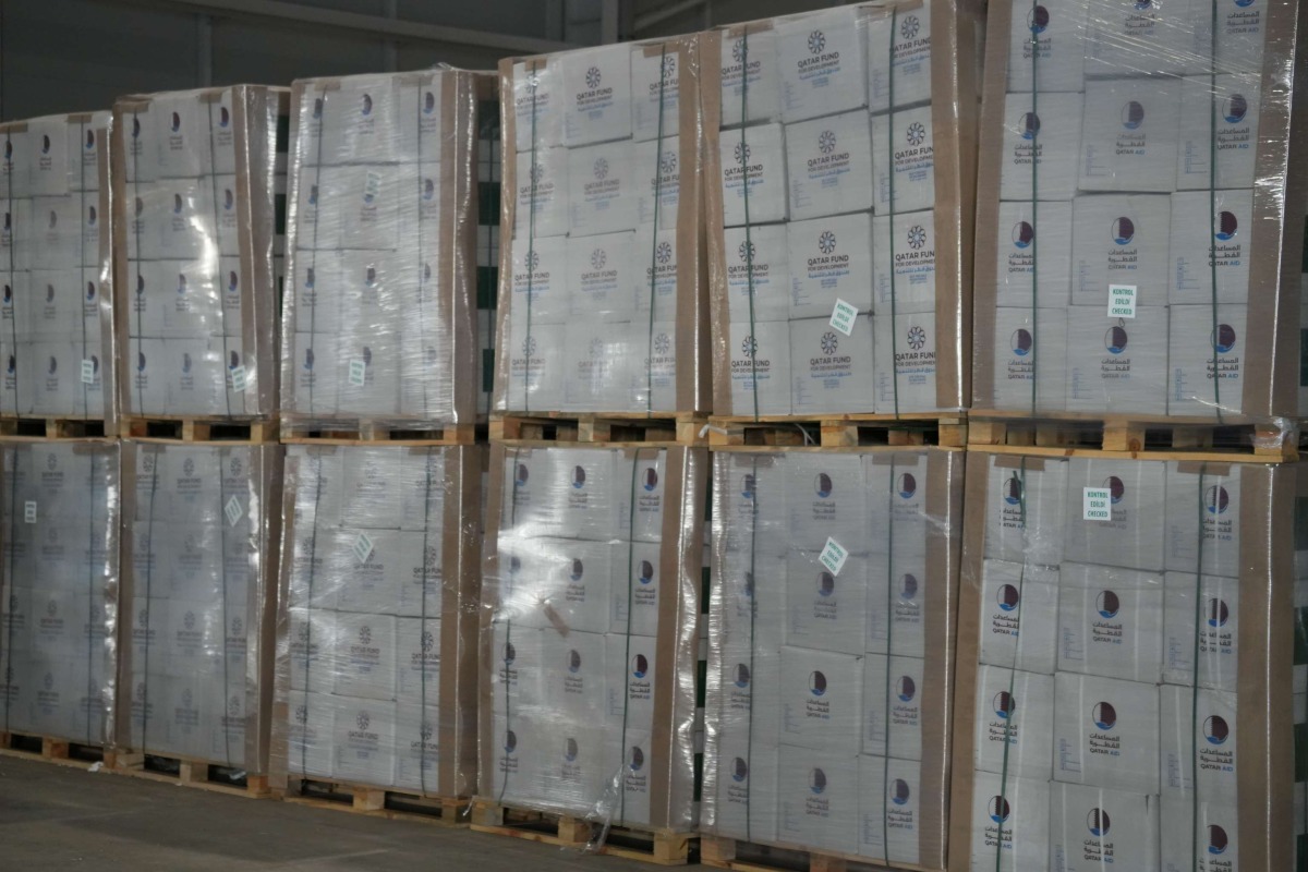 This food aid complements the State of Qatar's relief efforts via an air bridge established some weeks ago, with a total load of around 180 tons, equivalent to 5,500 food baskets.