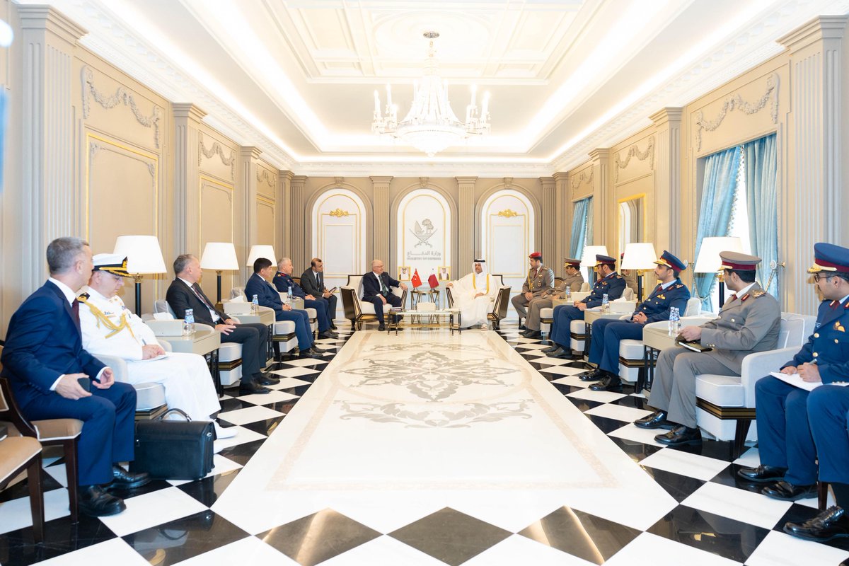 Doha, Qatar: Deputy Prime Minister and Minister of State for Defense Affairs HE Sheikh Saoud bin Abdulrahman bin Hassan Al-Thani met with Minister of Defense of the Republic of Turkiye HE General Yasar Guler, and his accompanying delegation, during his official visit to the State of Qatar.