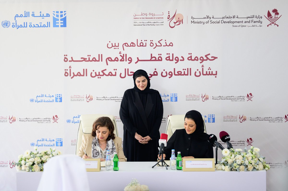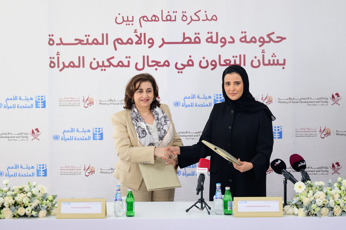 The MoU was co-signed by Assistant Undersecretary for Family Affairs at MSDF HE Sheikha Sheikha bint Jassim Al-Thani and Executive Director of UN Women and Under-Secretary-General of the UN Sima Sami.