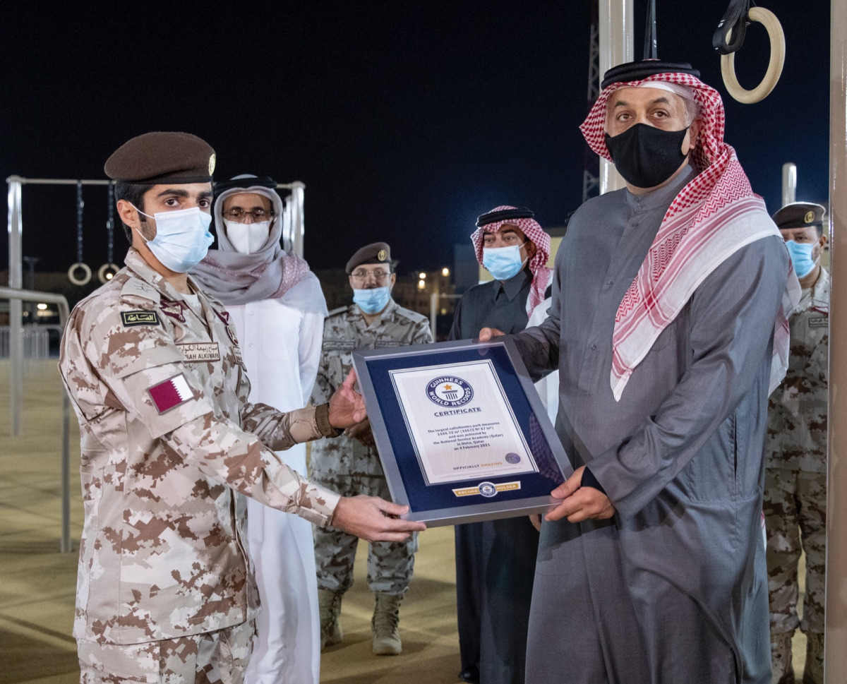 The park has entered the Guinness World Records for being the largest of its kind in the world. The ceremony was attended by Minister of Culture and Sports H E Salah bin Ghanem Al Ali, and a number of ranking officers in the Armed Forces.