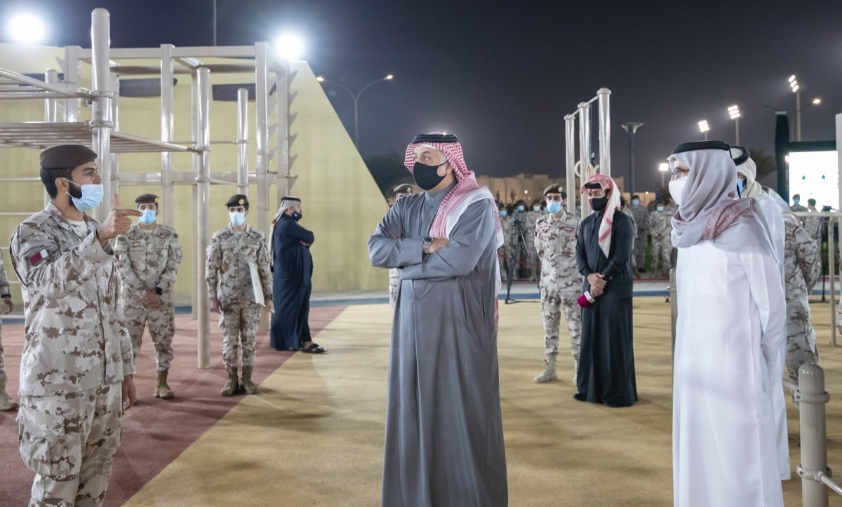 Doha: Deputy Prime Minister and Minister of State for Defence Affairs H E Dr. Khalid bin Mohammed Al Attiyah, inaugurated yesterday the calisthenics park in Meqdam camp, in conjunction with the National Sport Day.