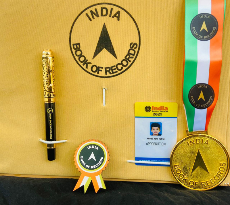 Ahmed Aahil Nafraz, a KG2 student of Noble Indian Kindergarten, also answered general knowledge questions regarding India and Qatar, various questions regarding sense organs, animals, professions etc on April 13, 2021.