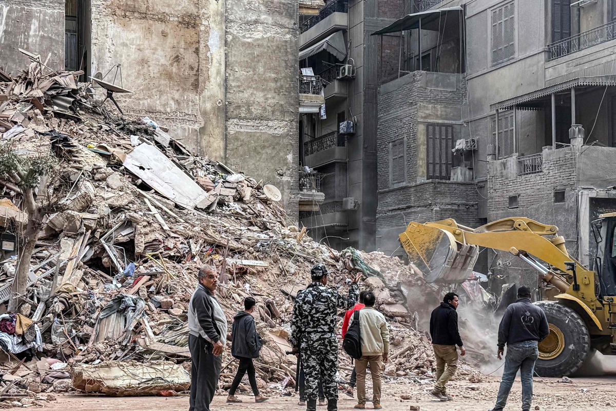 An excavator clears rubble from the site of a collapsed building in the Waili district of central Cairo on December 10, 2024. Photo by AFP