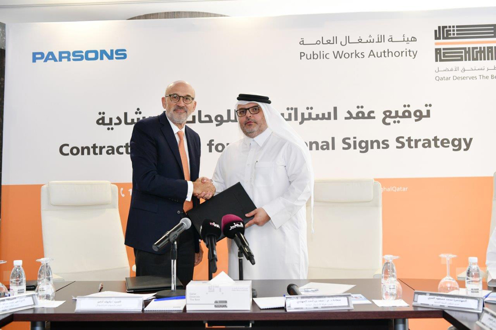 Dr Eng Saad bin Ahmad Al Muhannadi, President of Ashghal, signed the contract for the project with Garold Adams, President of Parsons International in the presence of Brigadier General Mohammed Marafih, Director of Traffic Engineering and Safety Department at General Department of Traffic.