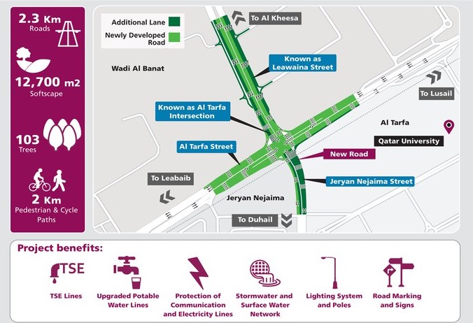 He also stated that Al Tarfa Intersection provides a link to Jeryan Nejaima Area and Wadi Al Banat Area as well as facilitating access to Abdullah bin Khalifa Stadium and Doha Golf Club.