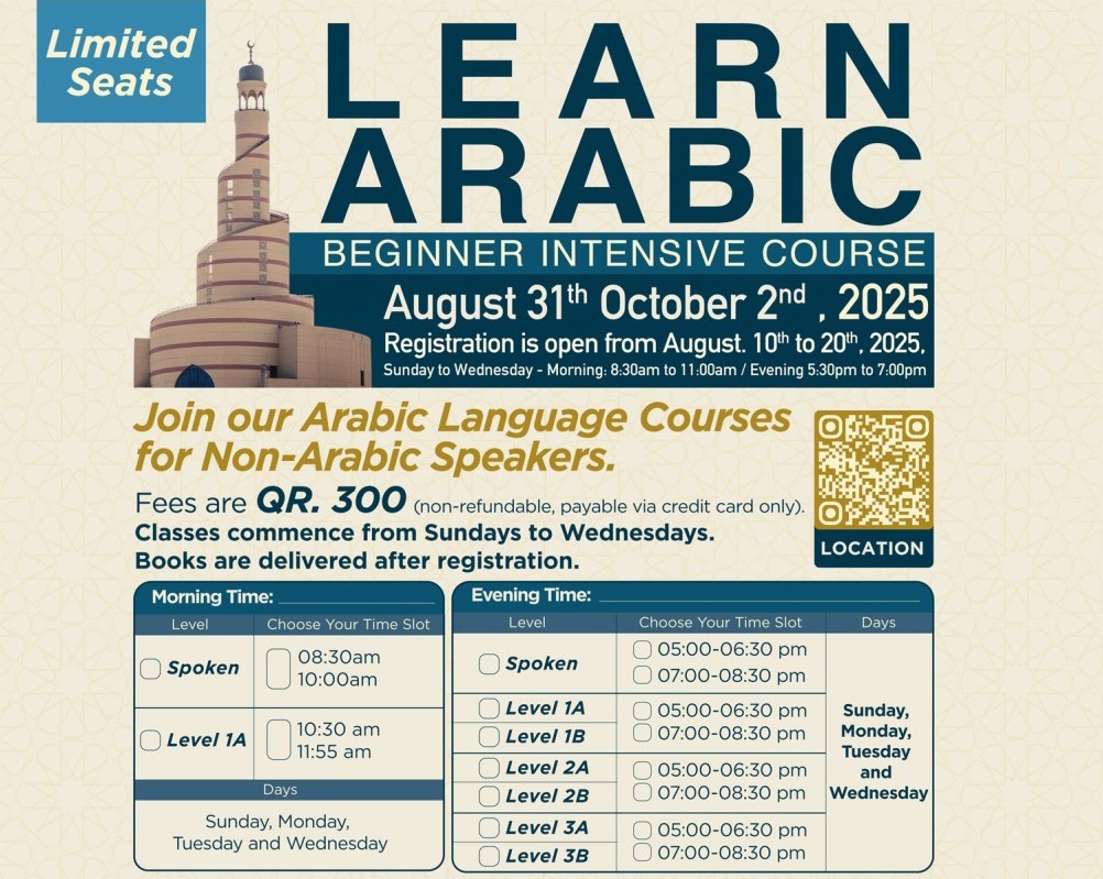 The Ministry of Awqaf and Islamic Affairs offers Arabic courses for non-native speakers, with a new beginner intensive course starting August 31, 2025. These courses are designed for expatriates and visitors, and they encompass six levels with a focus on spoken Arabic for daily life.