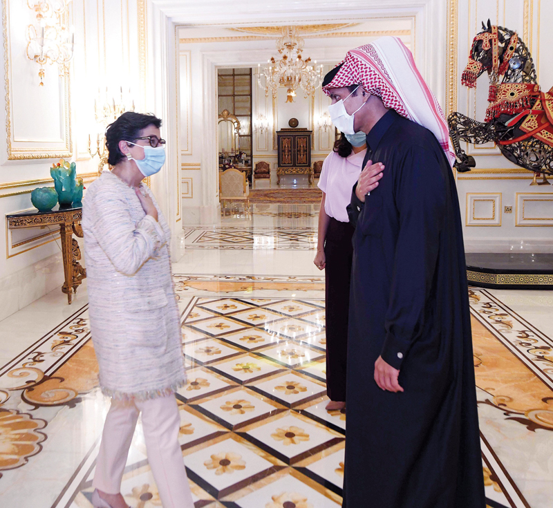 At the beginning of the meeting, Arancha Gonzalez, the Spanish Minister of Foreign Affairs, addressed a welcome note in which she thanked Sheikh Dr. Khalid for the meeting, and stressed on the importance of the joint business council that was recently launched and established by the Qatari Businessmen Association with the Spanish side CEOE on January 27, 2021, which would contribute to strengthening trade relations and supporting cooperation ties between both countries.
