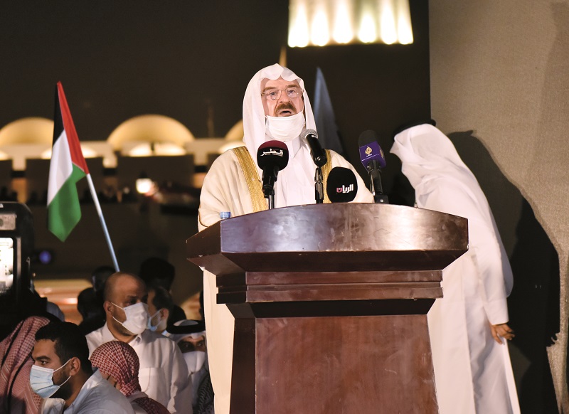 Doha: Thousands of people gathered yesterday in the Imam Muhammad bin Abdulwahhab Mosque square to express solidarity with Palestinian people against Israeli aggression.
