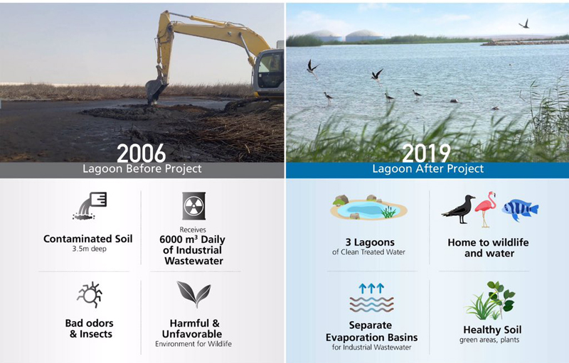 The project aimed at removing pollutants and minimising health risks to the environment surrounding Al Karaana lagoons, which had been used for more than ten years in dumping industrial effluents.
