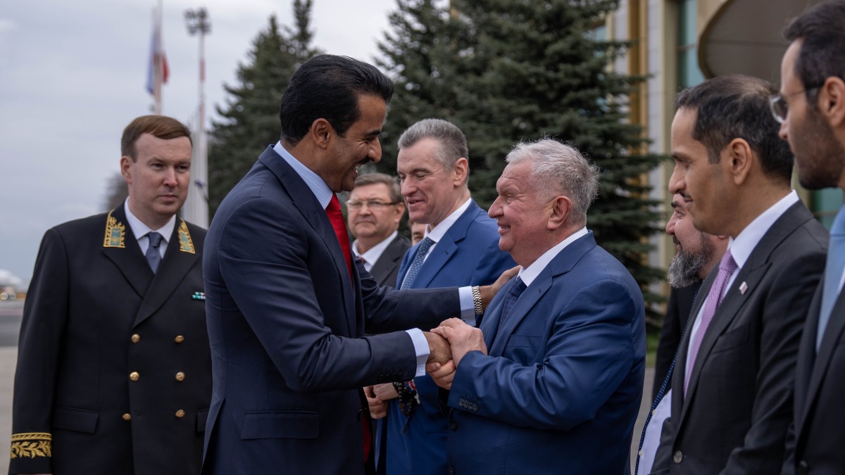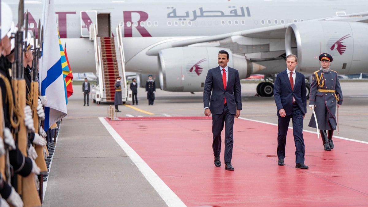 Moscow: The Amir HH Sheikh Tamim bin Hamad Al Thani arrived Thursday in Moscow on an official visit to the friendly Russian Federation.