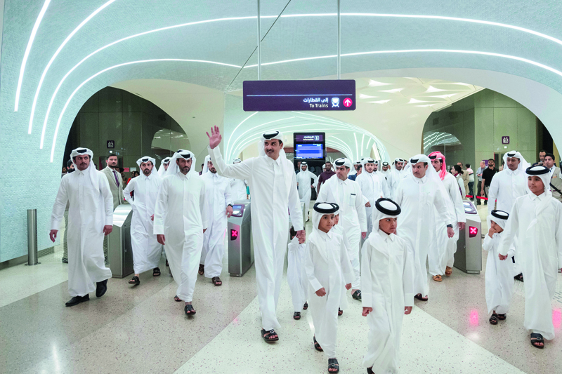 A few minutes earlier the Amir along with a large number of citizens and residents travelled on Doha Metro before embarking on a bus to reach the venue.