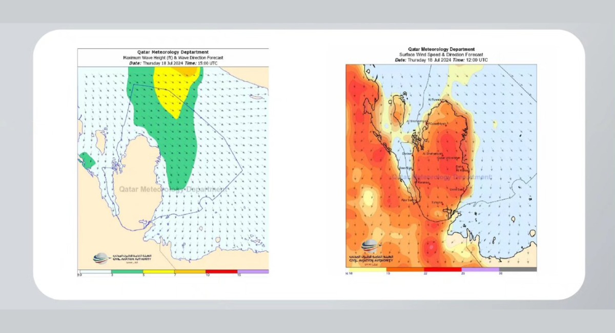 This weather condition may also cause dust to rise in some areas of Qatar, as wave heights at sea are expected to range between 3 to 5ft, reaching up to 7ft.