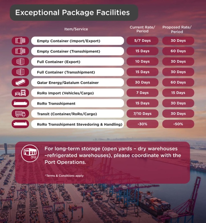 Doha, Qatar: Mwani Qatar has activated an exceptional package of facilitations in port tariffs, aimed at supporting the logistics sector and facilitating operational activities in the country.