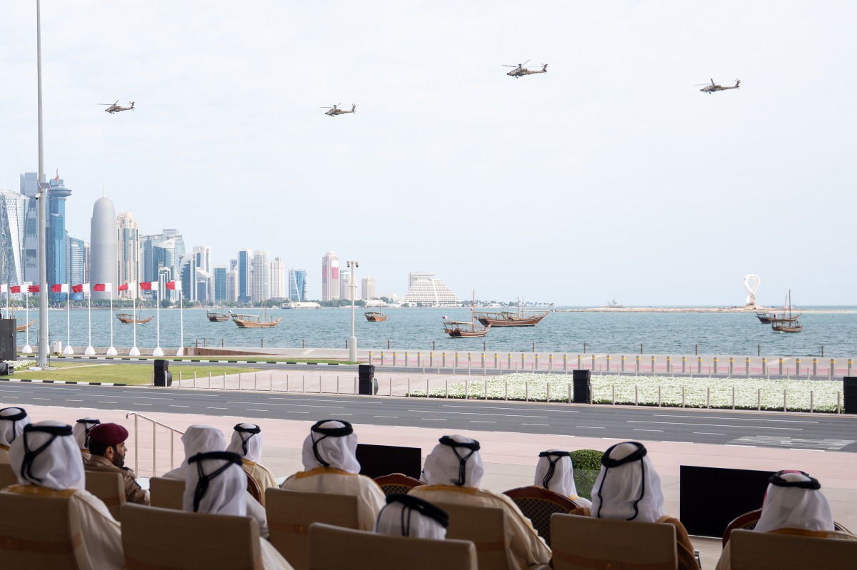 The parade was also attended by Speaker of the Shura Council HE Hassan bin Abdullah Al Ghanim, , a number of Their Excellencies the Sheikhs, Ministers, and dignitaries, heads of diplomatic missions accredited to the State, and Their Excellencies the visiting dignitaries.