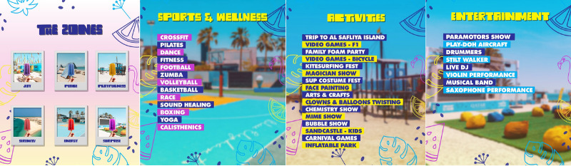 From sunrise workouts to sunset shows, the beach is divided into interactive ‘Zones’ – Joy, Peace, Playfulness, Serenity, Energy, and Surprise – each offering a unique experience.