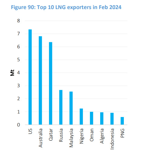 Top 10 LNG exporters in February 2024