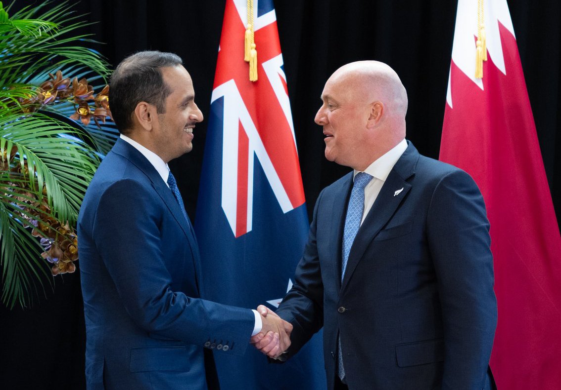 Wellington: Prime Minister and Minister of Foreign Affairs HE Sheikh Mohammed bin Abdulrahman bin Jassim Al Thani met in Wellington on Wednesday with Prime Minister of New Zealand HE Christopher Luxon.