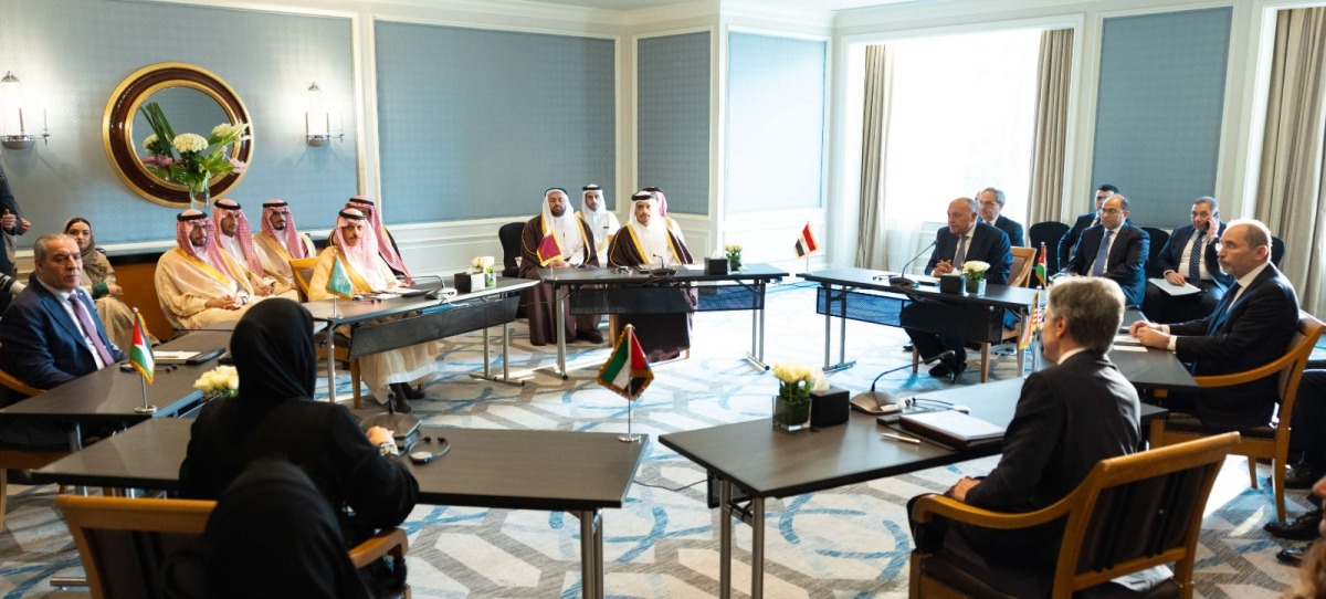Cairo: Prime Minister and Minister of Foreign Affairs HE Sheikh Mohammed bin Abdulrahman bin Jassim Al-Thani took part in a meeting of the Foreign Ministers of the State of Qatar, the Arab Republic of Egypt, the United Arab Emirates, the Hashemite Kingdom of Jordan and the State of Palestine with Secretary of State of the United States of America HE Antony Blinken, in Cairo on Thursday.