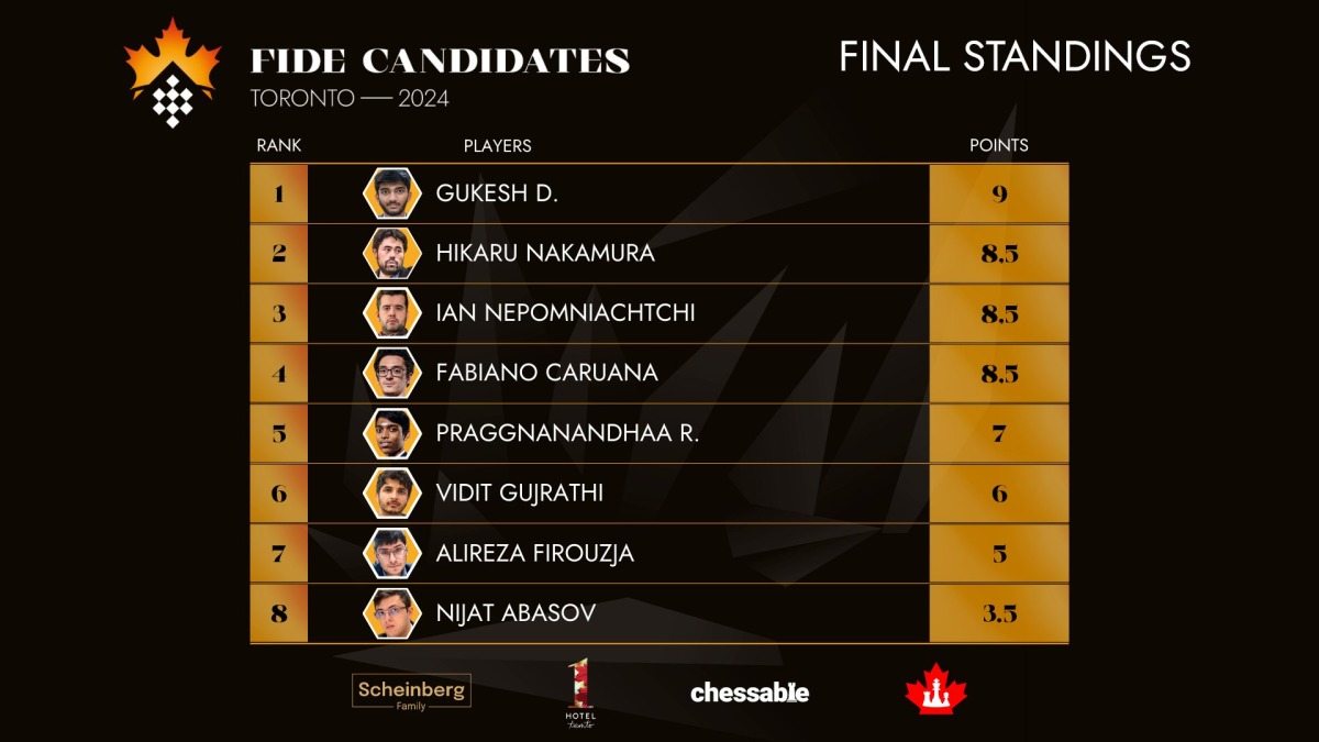 Doha, Qatar: Four players were vying for the top spot at the FIDE Candidates Tournament and the 17-year-old Indian prodigy Gukesh D emerged victorious in Toronto.