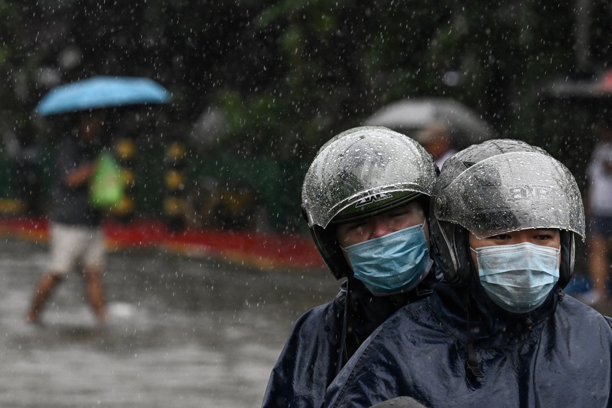 People wade through a flooded street in Manila on July 22, 2025, after heavy rains caused floodings enhanced by monsoon. Photo by Jam STA ROSA / AFP