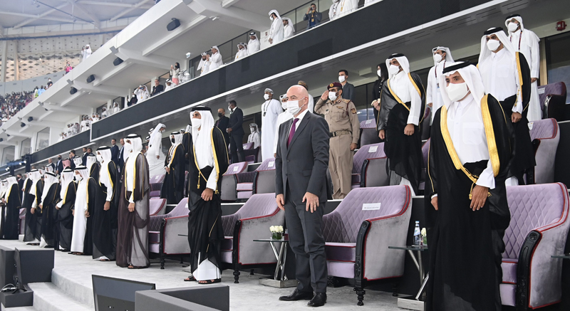 HH the Personal Representative of HH the Amir Sheikh Jassim bin Hamad Al-Thani, HH Sheikh Mohammed bin Khalifa Al-Thani, HE the Prime Minister and Minister of Interior Sheikh Khalid bin Khalifa bin Abdulaziz Al-Thani, and a number of Their Excellencies sheikhs and ministers attended the match.
