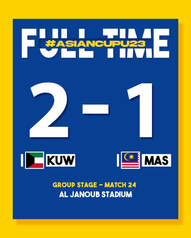 90' + 10' Game over. Kuwait U23 2-1 Malaysia U23.