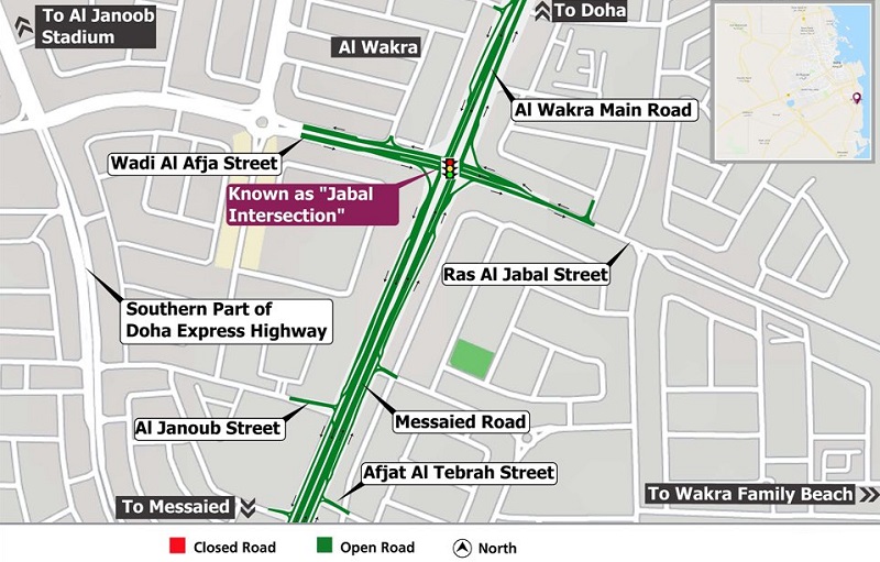 The new intersection will facilitate access to many vital facilities such as Al Wakra Family Beach, Al Wakra Old Souq, Government service complex, as well as a large number of residential and commercial complexes on each side of Al Wakra Main Road, the intersection will enhance traffic to Al Janoub Stadium through its closeness to the southern part of the Doha Express Highway leading to the World Cup Stadium.