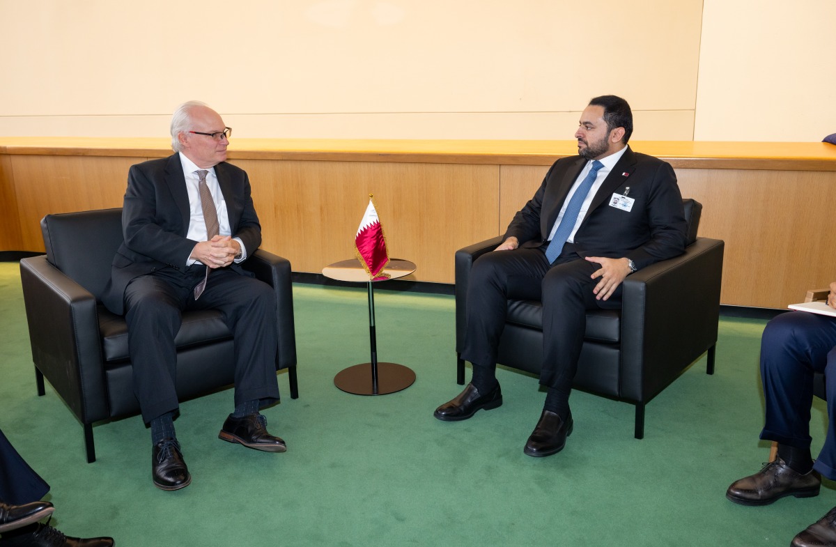 New York: Minister of State at the Ministry of Foreign Affairs HE Dr. Mohammed bin Abdulaziz bin Saleh Al Khulaifi met separately on Monday with the Minister of Foreign Affairs and Immigrants of the Lebanese Caretaker Government HE Dr. Abdullah Bou Habib, Acting Minister of Foreign Affairs and International Cooperation in the Libyan Government of National Unity (GNU) HE Al Taher Salem Al Baour, the Deputy Minister of Foreign Affairs of the Republic of Turkiye HE Nuh Yilmaz, the US Special Envoy for Yemen HE Timothy Lenderking, and Special Envoy for Hostage Affairs of the United States of America HE Roger Carstens, on the sidelines of the 79th session of the United Nations General Assembly (UNGA 79) in New York.
