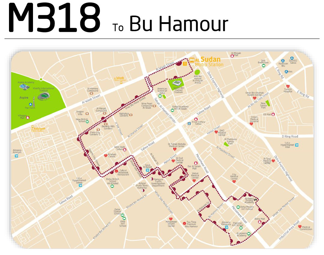 The free feeder bus service will serve the residential and commercial areas of Bu Hamour, including areas near Jassim Bin Hamad Stadium, Dar Al Salam Mall, Souq Al Baladi, Al Jazeera Academy and Mamoura Traffic Investigation Department.