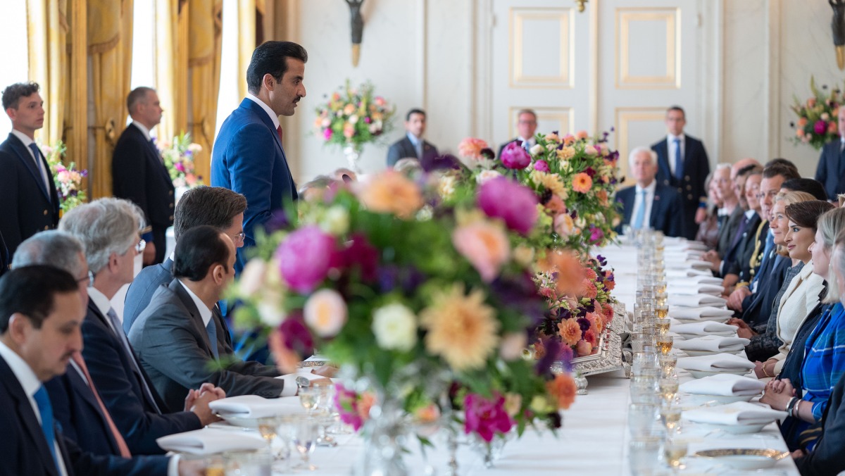 The luncheon and reception were attended by the Chief of the Amiri Diwan HE Sheikh Saud bin Abdulrahman Al Thani, the Minister of State for Energy Affairs HE Saad bin Sherida Al Kaabi, the Minister of Commerce and Industry HE Sheikh Mohammed bin Hamad bin Qassim Al Thani; and the Minister of State for International Cooperation at the Ministry of Foreign Affairs HE Lolwah bint Rashid Al Khater; along with Their Excellencies members of the accompanying official delegation.