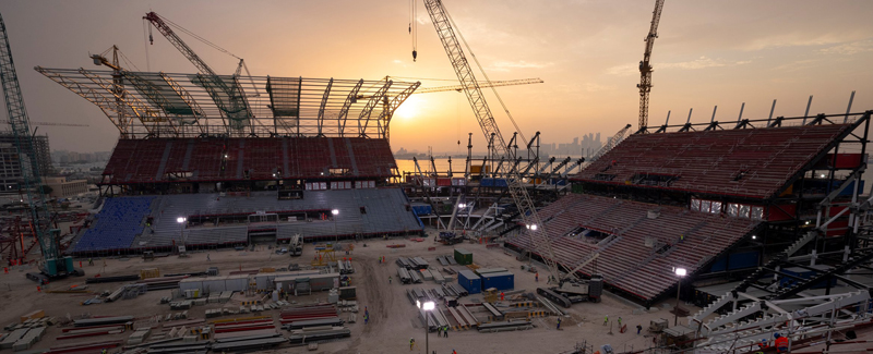 Constructed using shipping containers and modular elements, this 40,000-seat Qatar2022 World Cup venue will be entirely dismantled and repurposed post-2022, setting a new standard in tournament sustainability and legacy. Ras Abu Aboud will be the first FIFA World Cup venue to be fully dismantled and repurposed following the tournament.