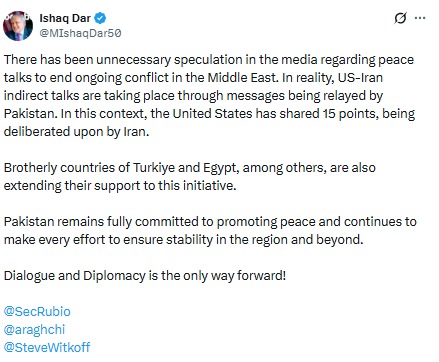 Pakistan confirms US-Iran mediation, says Turkiye, Egypt also involved