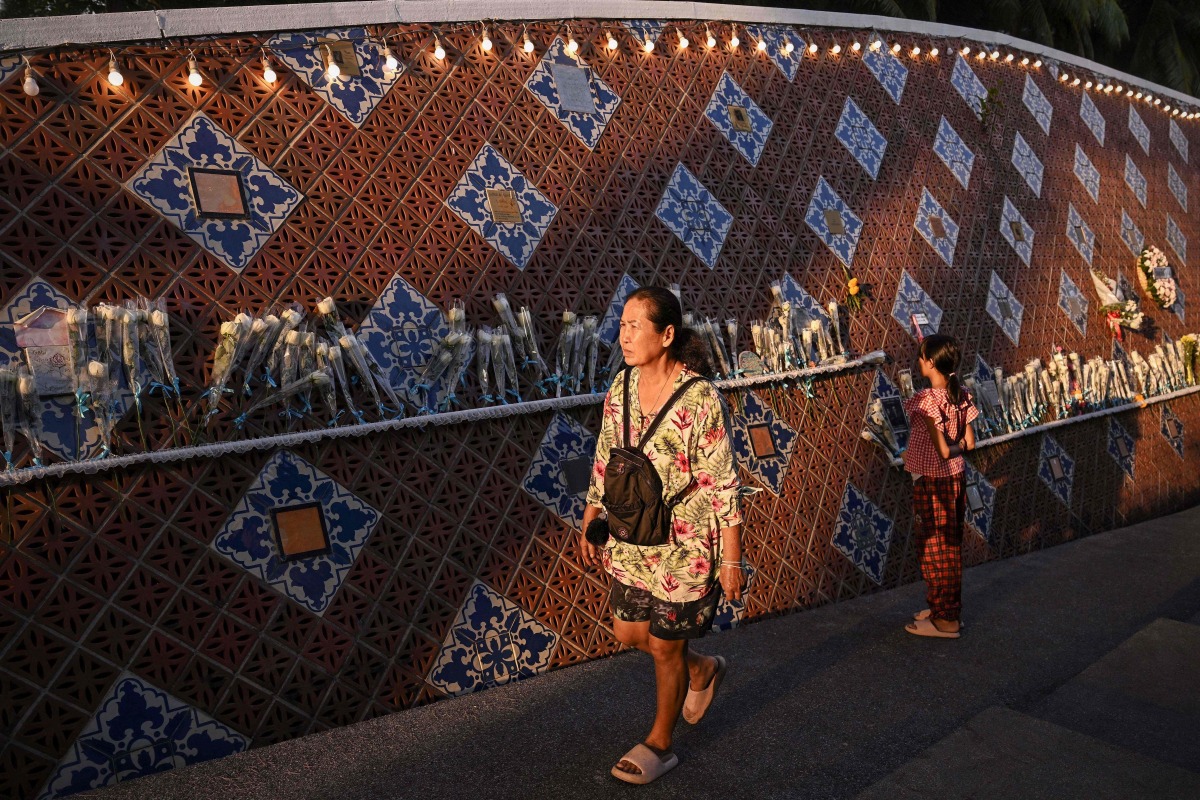 People visit the Ban Nam Khem Tsunami Memorial Park wall in southern Thai province of Phang Nga on December 26, 2024. Photo by Lillian SUWANRUMPHA / AFP
