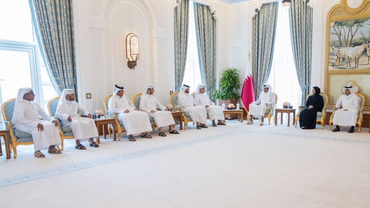 Doha, Qatar: The Amir HH Sheikh Tamim bin Hamad Al Thani honored, at the Amiri Diwan on Tuesday morning, the State's top outstanding male students in high school.