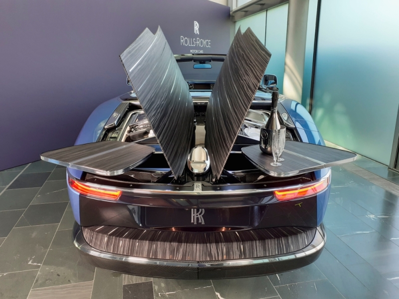 GOODWOOD, England - A convertible Rolls-Royce with a back deck that opens up to reveal cocktail tables, fridges for champagne and a parasol matching the vehicle's baby blue colour scheme is now a reality - for one ultra-wealthy individual.