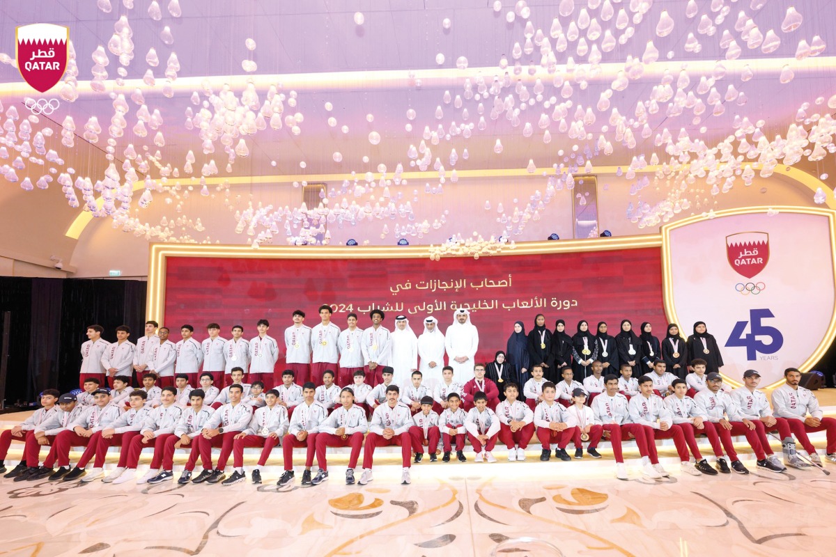 At the beginning of the ceremony, a film was screened about the history and achievements of the Qatar Olympic Committee over the past 45 years. Sheikh Joaan honoured Team Qatar promising stars who accomplished achievements in the first GCC Youth Games "UAE 2024".