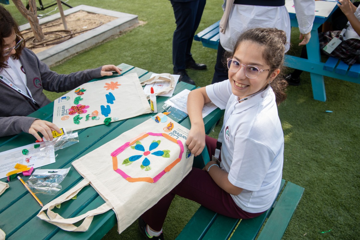 In a shift from the traditional education model to a more hands-on learning model, students took on the role of eco-entrepreneurs and created the bags from wasted fabric. These eco-conscious creations, which are serving as a vehicle for community engagement and environmental advocacy, are now being sold at Qatar Foundation’s (QF) Education City Gift Shop branches located within the 2015 building (QF Headquarters) and Multaqa (Education City Student Center), as well as the pop-up shop in Torba Farmers Market. The revenue from sales is donated to a tree planting activity in the Education City under the QF Park and Plant initiative. All buyers are eligible to participate in this activity.