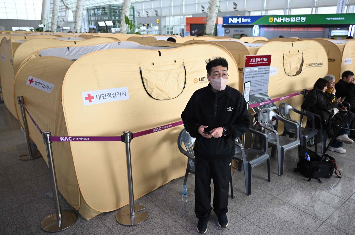 Relatives of passengers of a Jeju Air Boeing 737-800 series aircraft gather at a make-shift shelter at Muan International Airport in Muan, some 288 kilometres southwest of Seoul on December 30, 2024. Photo by JUNG YEON-JE / AFP