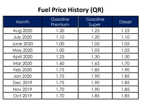 In April 2016, the Ministry of Energy and Industry had started pegging the fuel prices to the international market and from September 2017, it is Qatar Petroleum who is announcing the monthly price list.